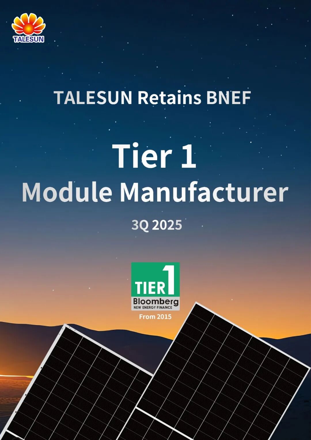 Talesun Retains Position on BNEF Tier 1 List for Q3 2025