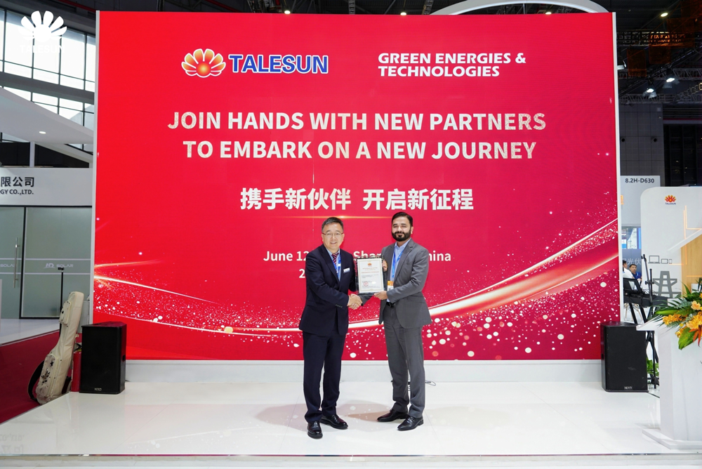 After the award ceremony, Talesun Solar held an agency authorization ceremony for GREEN ENERGIES & TECHNOLOGIES in Pakistan. The company possesses extensive local energy resources and a broad market network. The two parties will work together to promote the development of Pakistan’s PV industry and provide clean, sustainable energy solutions for the region.