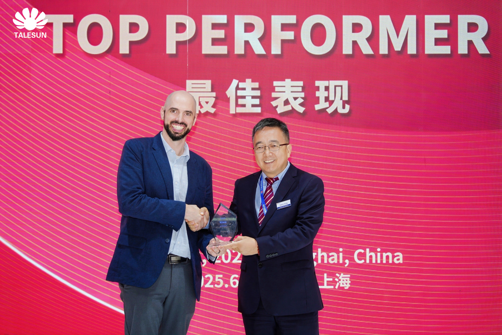 June 12, 2025 – On the second day of SNEC 2025, the exhibition continued to attract enthusiastic crowds. At Talesun Solar’s booth [8.2H-D630], a highly anticipated award ceremony was grandly held. The globally renowned certification body Kiwa presented Talesun Solar with the “TOP PERFORMER” title in recognition of its exceptional performance across seven rigorous tests. With its outstanding capabilities,?Talesun Solar has become one of only nine companies worldwide to achieve top marks in all seven tests.
